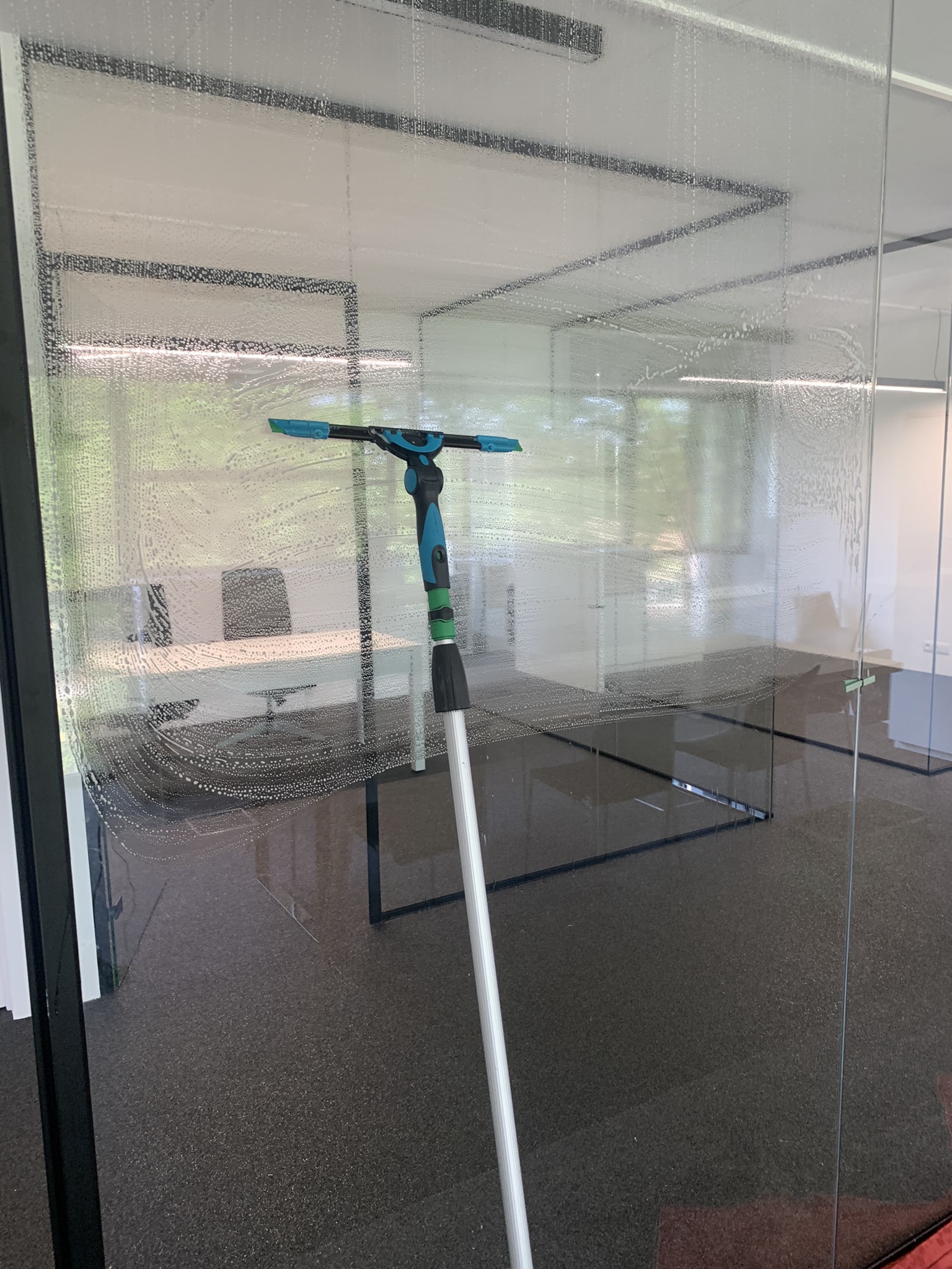 Reiniging met gebruik van een inwasser en aftrekker. Deze methode is ideaal voor de binnenkant, en wordt ook gebruikt voor het meest hardnekkige vuil